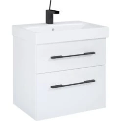 Maximus Waschbeckenunterschrank Madrid 60 Cm Weiß Matt Mit Schwarzen Griffen