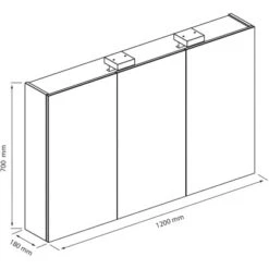 Dieser Allibert Spiegelschrank mit einer Breite von 120 cm ist die perfekte Ergänzung für das moderne Bad von Heute. Der weiße Korpus und die asymmetrische Spiegelfläche verleihen diesem Spiegelschrank seinen ganz eigenen Charme. Ein weiteres Highlight des modernen und eleganten Badmöbels sind die sowohl von außen als auch von innen verspiegelten Türen. Die Schalter-Steckkombination des Spiegelschrankes ist auch bei geschlossener Tür nutzbar. Abgerundet wird das neue Highlight Ihres Bades durch 6 höhenverstellbare Glasfachböden aus ESG-Glas und 2 LED-Leuchtmittel mit 3,5 Watt.