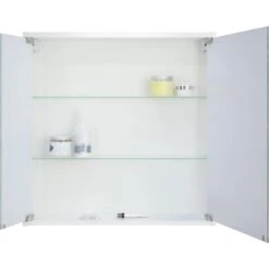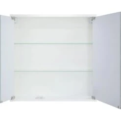 Der Astor Spiegelschrank Nice I 60 cm in Weiß besticht durch sein modernes Design und großzügigen Stauraum. Er verfügt über zwei asymmetrische Spiegeltüren sowie zwei Glas-Einlegeböden.