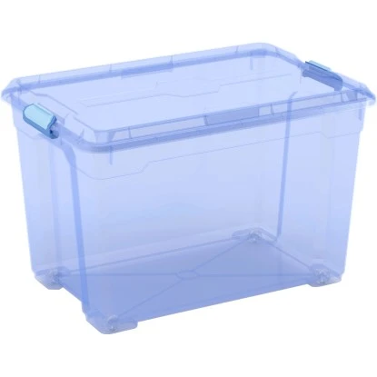 Die praktische Clipbox Moover XL in Blau bietet Stauraum für allerlei Kleinkram. Die Box mit 4 Rollen ist aus Kunststoff gefertigt, verfügt über einen fest verschließbaren Deckel und ist transluzent.