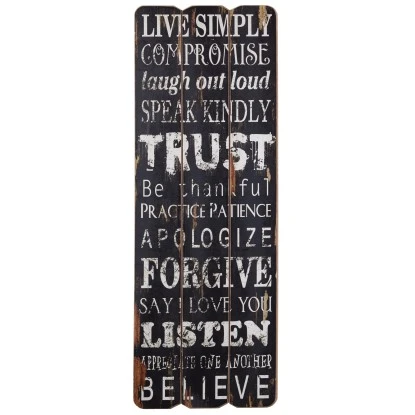 Die dekorativen Schilder in Holz-Optik sind ein echter Hingucker und peppen mit ihren Sprüchen jedes Wohnambiente auf. Die Schilder aus MDF habe eine Stärke von 2 cm und sind in Used-Look gestaltet.