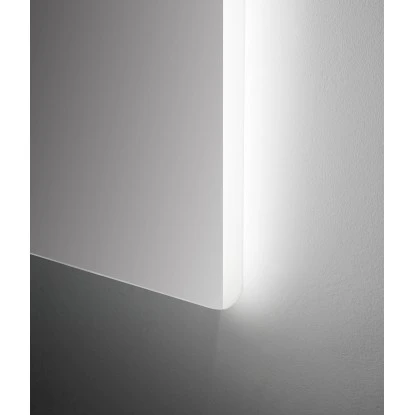 Zwei sandgestrahlte, blendfreie LED-Lichtausschnitte fĂŒgen sich bĂŒndig in die SpiegeloberflĂ€che ein und bilden eine einzigartige Kombination aus Designerspiegel und Badleuchte. Die Leuchten verfĂŒgen ĂŒber die neueste LED-Technologie in einer Lichtfarbe von 4100 Kelvin und liefern 812 Lumen Helligkeit. Dank der energiesparenden Eigenschaften des beleuchteten Spiegels wird zudem die Umwelt und die Geldbörse geschont.