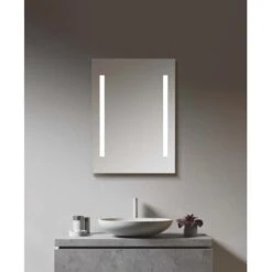 Der DSK Design Lichtspiegel Silver Beam ist ein zeitloses Wohnaccessoire und ein besonderer Blickfang für jeden Raum. Dieser Spiegel besticht durch seine hochwertigen Materialien wie silberbeschichtetes Spiegelglas, einen stabilen, umlaufenden Aluminiumrahmen sowie eine ausgezeichnete Verarbeitung. Das Highlight des Design Spiegels sind die beiden hinterleuchteten Lichtausschnitte, die oberflächenbündig in die Spiegelfläche integriert sind. Dank moderner LED-Technik wird das eigene Spiegelbild optimal ausgeleuchtet. Mit einer Größe von 50 x 70 cm passt der Lichtspiegel in nahezu jedes Bad oder Gäste-WC und sorgt für eine angenehme Bad-Beleuchtung. Die Montage des DSK Design Lichtspiegels Silver Beam ist in wenigen Schritten durchführbar und das benötigte Befestigungsmaterial ist im Lieferumfang enthalten.