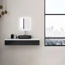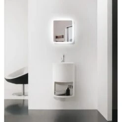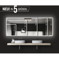 Der DSK Design Lichtspiegel Silver Luna ist ein eleganter Blickfang für Ihr Badezimmer, der sich dezent und harmonisch den bestehenden Badmöbeln anpasst. Er besticht durch edle Materialien wie Pilkington Spiegelglas, einen hochwertigen, umlaufenden Aluminiumrahmen in gebürsteter Optik sowie eine ausgezeichnete Verarbeitung. Highlight des Wandspiegels ist die sandgestrahlte LED-Lichtumrahmung, die oberflächenbündig in die Spiegelfläche integriert ist. Dank moderner LED-Technik wird das eigene Spiegelbild optimal ausgeleuchtet. Mit einer Größe von 40 x 45 cm passt der Lichtspiegel in nahezu jedes Bad oder Gäste-WC und sorgt für eine angenehme Bad-Beleuchtung. Die Montage ist in wenigen Schritten durchführbar und das benötigte Befestigungsmaterial ist im Lieferumfang enthalten.