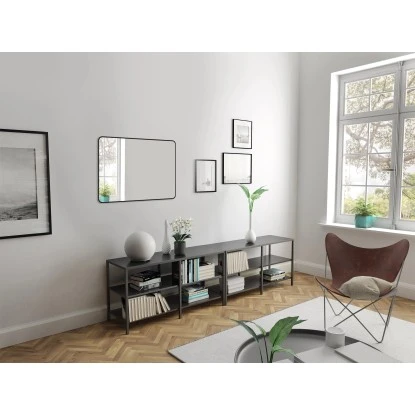 Der DSK Design Wandspiegel Black Magico ist ein zeitloses Wohnaccessoire und ein besonderer Blickfang für jeden Raum. Er besticht durch edle Materialien wie Pilkington Spiegelglas und eine erstklassige Verarbeitung. Highlight des Wandspiegels ist die hochwertige, mattschwarz lackierte Aluminiumrahmung mit abgerundeten Ecken. Der sehr edle Rahmen schmiegt sich nahtlos an die hochwertige Spiegeloberfläche an. Der Wandspiegel kann vertikal oder horizontal aufgehängt werden und passt mit einer Größe von 80 x 60 cm in nahezu jeden Raum.