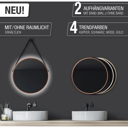 Der DSK Design Wandspiegel Silver Coiffeur Copper besticht durch seine hochwertigen Materialien, einen kupferfarbenen Aluminiumrahmen und eine erstklassige Verarbeitung. Der edle Gurt in trendiger Lederoptik ermöglicht eine dekorative Wandmontage und rundet das exklusive Design perfekt ab. Der Designspiegel passt mit einer Größe von Ø 50 cm in nahezu jeden Raum. Die Montage ist in wenigen Schritten durchführbar und das benötigte Befestigungsmaterial ist im Lieferumfang enthalten.