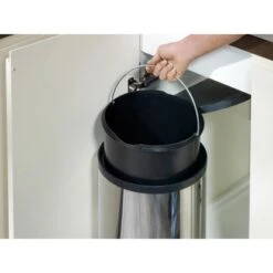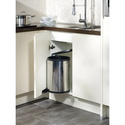 Der Einbauabfallsammler ist für Unterschränke mit einer Mindestbreite von 40 cm geeignet. Der Abfallsammler mit einem Volumen von 15 l hat die Maße 40 cm x 34 cm x 27 cm. Eine einfache Handhabung ist garantiert durch den herausnehmbaren Kunststoffeimer. Der Rumpf ist aus rostfreiem Edelstahl und der Deckel sowie die Ringe sind aus schwarzem Kunststoff.