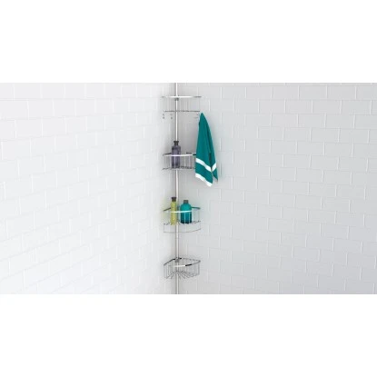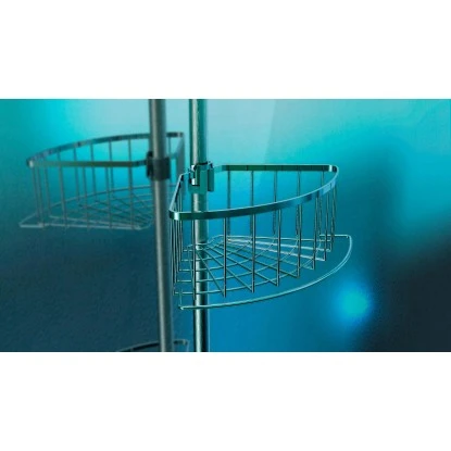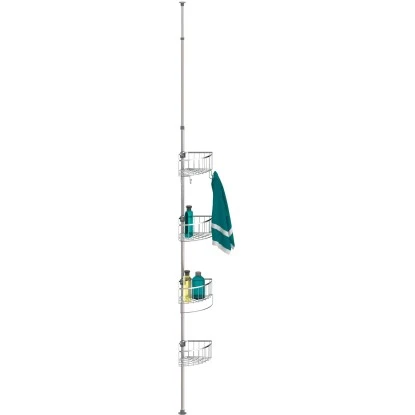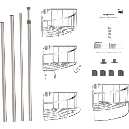 Eisl Teleskop Duschablage Ecke mit 4 Duschkörben Edelstahl. Die hochwertige Edelstahl-Teleskopstange hat eine Mindestlänge von 170 cm und kann bis 276 cm ausgezogen werden. Damit lässt es sich auf nahezu jede Raumhöhe individuell anpassen.