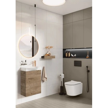 Ein zusätzlicher Vorteil der Kollektion ist ein Keramikwaschbecken mit speziell geformtem und abgerundetem Becken. Der geräumige Schrank eignet sich perfekt zur Aufbewahrung aller notwendigen Dinge des täglichen Bedarfs. Rave ist zur einfachen Selbstmontage geeignet und lässt sich mit einem Spiegel oder Spiegelschrank perfekt kombinieren.