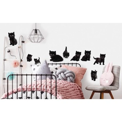 Mit diesem Wandtattoo können Sie Ihre Wände kreativ aufwerten und so für einen echten Blickfang in Ihren Räumen sorgen. Die schwarzen Katzenbabys sind in unterschiedlichen Posen dargestellt und verschönern Wände von Groß und Klein.