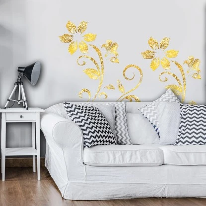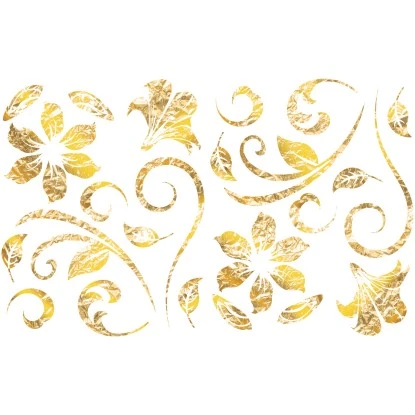 Mit diesem Wandtattoo können Sie Ihre Wände kreativ aufwerten und so für einen echten Blickfang in Ihren Räumen sorgen. Die floralen Muster in Gold wirken sehr elegant und edel. Das Gold leuchtet richtig und fällt sofort ins Auge.