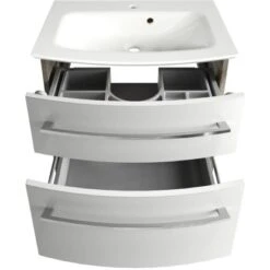Be free – my style! Aus der Kombination dieser fröhlichen Lebenseinstellung generiert sich der Name des neuen Badmöbel-Programms von Fackelmann. Auch das 2-teilige Badmöbel-Set B.Style deckt mit fünf ansprechenden Dekorkombinationen viele Wünsche der modernen Badgestaltung ab. Das Set besteht aus einem Gussmarmor-Waschtisch mit eleganter Kantenführung in Weiß und einem passenden Waschtisch-Unterschrank. Ausgestattet mit zwei geräumigen Schubladen, von denen die obere zudem über ein integriertes Ordnungsfach verfügt, bietet dieser genügend Stauraum für Handtücher, Kosmetik und Zubehör.