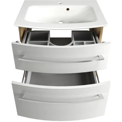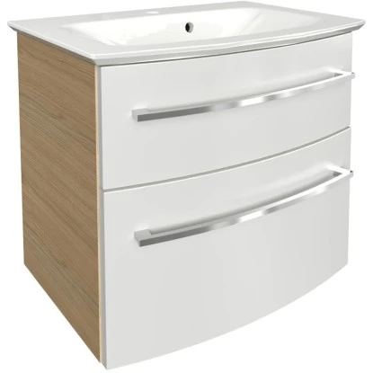 Be free – my style! Aus der Kombination dieser fröhlichen Lebenseinstellung generiert sich der Name des neuen Badmöbel-Programms von Fackelmann. Auch das 2-teilige Badmöbel-Set B.Style deckt mit fünf ansprechenden Dekorkombinationen viele Wünsche der modernen Badgestaltung ab. Das Set besteht aus einem Gussmarmor-Waschtisch mit eleganter Kantenführung in Weiß und einem passenden Waschtisch-Unterschrank. Ausgestattet mit zwei geräumigen Schubladen, von denen die obere zudem über ein integriertes Ordnungsfach verfügt, bietet dieser genügend Stauraum für Handtücher, Kosmetik und Zubehör.