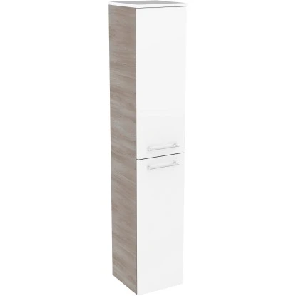Der Fackelmann Hochschrank Lima verkörpert ein innovatives und modernes Design. Der Korpus in Steinesche harmoniert wunderbar mit der weißen Front, was den Schrank zu einem absoluten Highlight in Ihrem Bad macht. Die hochwertigen Chrom glänzenden Griffe runden das attraktive Gesamtbild ab. Hinter 2 Türen erwartet Sie eine praktische Einteilung durch 4 elegante Glaseinlegeböden. Dadurch wird für viel Platz gesorgt und Sie können Ihre Badutensilien, Kosmetikartikel und Handtücher ordentlich verstauen.