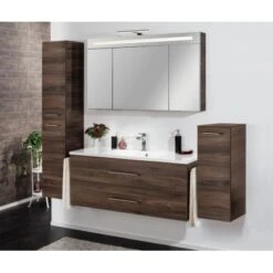 Die Badmöbel Made in Germany zeichnen sich durch hochwertige Qualität aus. Korpusse und Fronten sind aus feuchtigkeitsresistenten Materialien gefertigt, stabil und pflegeleicht. Die Kanten sind hochwertig verarbeitetet und weisen eine Dickkante mit feuchtigkeitsresistenter PU (Polyurethan)-Verleimung auf. Das Programm B.clever ist hängend konzipiert und wird zerlegt zum einfachen Selbstaufbau geliefert.