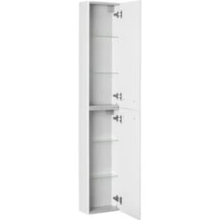 Der Fackelmann Hochschrank Luna slim zeichnet sich durch stilvolle Optik, hochwertige Verarbeitung und hohe Funktionalität aus. Mit Fronten in edlem Weiß Hochglanz und Korpusse in Weiß matt ist dieses Badmöbel ein eleganter Blickfang in jedem Badezimmer. Mit einer Tiefe von nur 17 cm ist es zudem besonders platzsparend und eignet sich ideal für kleine Bäder und Gäste-WCs. Die Maße betragen (B x H x T) 30 cm x 162 cm x 17 cm.