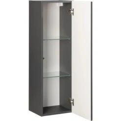 Der puristische Midischrank überzeugt neben der ansprechenden Optik auch mit seiner hohen Funktionalität. Er ist mit zwei Glasablagen ausgestattet und bietet viel Platz für die optimale Aufbewahrung von Handtüchern & Co.