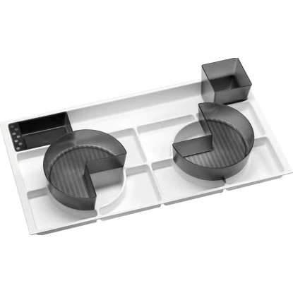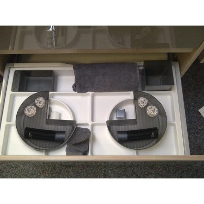 Das Fackelmann Organisationsset aus dem Material Kunststoff mit weißer Einlage und 4 Organisationsteilen in der Farbe Stonegrau ist passend für den 80954 (OBI Art.-Nr.106309) Kara White Waschbeckenunterschrank. Passt auch in die untere Schublade von dem 80934 (OBI Art.-Nr.106308) KARA White Waschbeckenunterschrank.