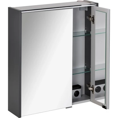Der moderne Fackelmann Spiegelschrank Denver setzt Ihren Waschplatz toll in Szene, lässt Ihr Bad heller wirken und kann auch mit praktischen Eigenschaften punkten. Die LED-Leuchte (Leuchteinheit austauschbar) sorgt für ein kinderleichtes Styling oder Rasieren in den frühen Morgenstunden. Die Spiegeltüren sorgen noch dazu für eine perfekte 3D-Ansicht. Hinter den 2 Türen verbergen sich 2 Glaseinlegeböden, die genügend Platz für Ihre Badutensilien und Kosmetikartikel bieten. Zudem ist der Spiegelschrank mit einer Elektrobox inklusive Lichtschalter und Steckdose ausgestatte. So können Sie lästigen Kabelsalat am Waschbecken vermeiden.