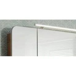 Mit den Artikeln aus der Fackelmann Badmöbel-Serie Milano setzen Sie moderne Akzente in Ihrem Bad und sorgen für einen Hingucker. Der Fackelmann Spiegelschrank Milano ist ein echtes Schmuckstück und rückt Ihren Waschplatz dank der Ambientebeleuchtung unter dem Schrank und der LED-Aufsatzleuchte ins rechte Licht. Mit den abgerundeten Spiegeltüren passt der Schrank ideal zu der Beckengeometrie des Fackelmann Waschplatzes Milano (nicht im Lieferumfang enthalten). Die Anordnung der 3 überstehenden Türen gestattet nicht nur ein einfaches, griffloses Öffnen sondern auch den 3D-Effekt für eine 360° Betrachtung im Spiegel. Dies sorgt für noch mehr Komfort beim täglichen Stylen, Schminken oder Rasieren. Ausgestattet mit 6 Glaseinlegeböden bietet der Schrank viel Stauraum für Bad- und Kosmetikartikel der ganzen Familie. Zudem lässt der Schrank Ihr Bad heller und freundlicher wirken.