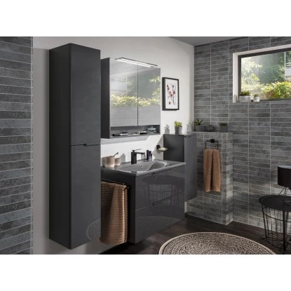 Der elegante Spiegelschrank überzeugt neben der ansprechenden Optik auch mit seiner hohen Funktionalität. Er ist mit zwei Glasablagen ausgestattet und bietet den idealen Aufbewahrungsort für diverse Kosmetikartikel und Haarbürsten. Die offene Ablage in Anthrazit bietet zusätzlichen Stauraum und ist mit 3,6 W LEDs stilvoll beleuchtet.