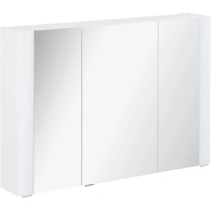 Der Badezimmerschrank verfügt über drei große Spiegeltüren aus hochwertigem Glas. Dank der vertikalen Lichtblenden, die im Lieferumfang enthalten sind, wird der Spiegel jederzeit ideal ausgeleuchtet. Zudem ist die Beleuchtung sehr energiesparend. Ein gedrehter Anschlag der äußeren Türen ermöglicht eine perfekte 3D-Ansicht. Der Fackelmann Spiegelschrank besitzt außerdem eine Schalter-Steckdosen-Kombination. Die bewährten Scharniere sind mit einem Metallband verstärkt und in drei Dimensionen verstellbar. Innerhalb des Schranks befindet sich großzügiger Platz für all Ihre Badezimmerutensilien. Die linke und rechte Tür sind von innen zusätzlich verspiegelt.