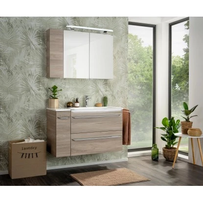 Melaminbeschichtung: Dank der Melaminharzbeschichtung sind Ihre Badmöbel feuchtigkeitsbeständig und pflegeleicht.