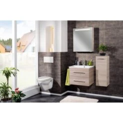 Die Badmöbel Made in Germany zeichnen sich durch hochwertige Qualität aus. Korpusse und Fronten sind aus feuchtigkeitsresistenten Materialien gefertigt, stabil und pflegeleicht. Die Kanten sind hochwertig verarbeitetet und weisen eine Dickkante mit feuchtigkeitsresistenter PU (Polyurethan)-Verleimung auf. Das Programm B.clever ist hängend konzipiert und wird zerlegt zum einfachen Selbstaufbau geliefert.