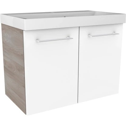 Der Fackelmann Waschbeckenunterschrank Lima verkörpert ein innovatives und modernes Design. Der Korpus in Steinesche harmoniert wunderbar mit der weißen Front, was den Schrank zu einem absoluten Highlight in Ihrem Bad macht. Die hochwertigen Chrom glänzenden Griffe runden das attraktive Gesamtbild ab. Mit 2 Türen ist unter dem Waschbecken für viel Platz gesorgt und Sie können Ihre Badutensilien und Handtücher ordentlich verstauen.