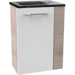 – Waschbeckenunterschrank mit 1 Tür links (inkl. Metallgriff) und 1 Einlegeboden
