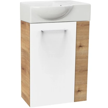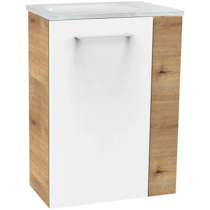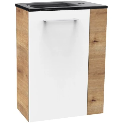 – Waschbeckenunterschrank mit 1 Tür links (inkl. Metallgriff) und 1 Einlegeboden