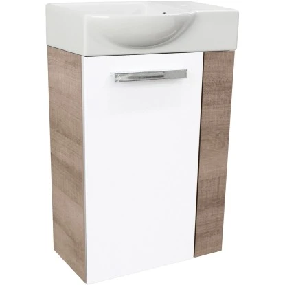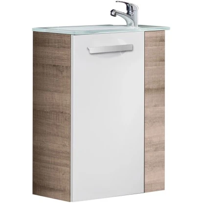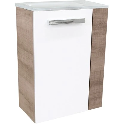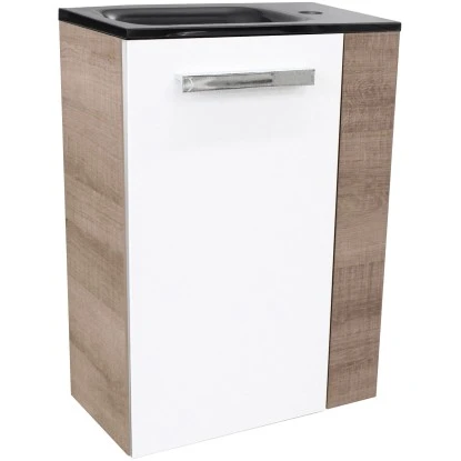 – Waschbeckenunterschrank mit 1 Tür links (inkl. Metallgriff) und 1 Einlegeboden