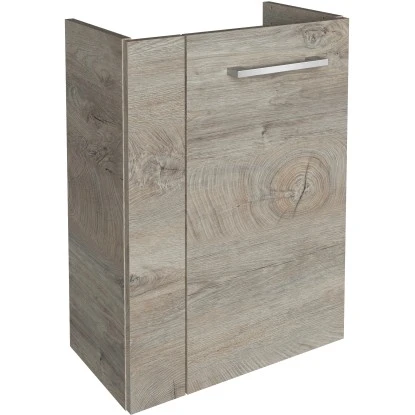 Immer mehr fungiert das Gästebad als Visitenkarte des persönlichen Einrichtungsstils. Der Fackelmann Waschbeckenunterschrank ist Teil der Small Bathroom Collection (SBC), mit der Fackelmann sein bewährtes Konzept für die Vielfalt und das elegante Ambiente im Gästebad neu überdacht und optimiert hat. Der hängend montierte Waschbeckenunterschrank begeistert mit zahlreichen ansprechenden Korpus- und Frontvarianten, die von Weiß über Anthrazit bis hin zu diversen Holzdekoren reichen. Die Tür rechts lässt sich mit einem edel anmutenden Metallgriff öffnen. Das Schrankinnere ist in neutralem Silbergrau gehalten. Alle notwendigen Badutensilien können auf einem Einlegeboden sicher und sauber verstaut verstaut werden.