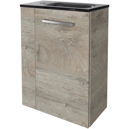 – Waschbeckenunterschrank mit 1 TĂĽr rechts (inkl. Metallgriff) und 1 Einlegeboden