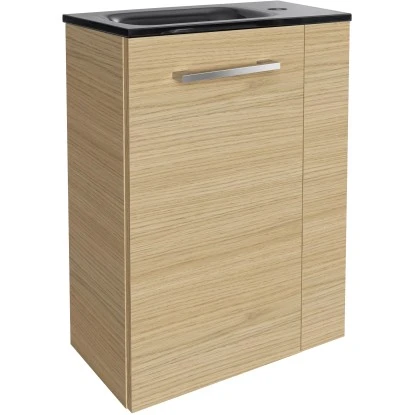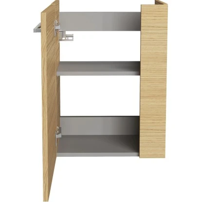 – Waschbeckenunterschrank mit 1 Tür links (inkl. Metallgriff) und 1 Einlegeboden