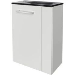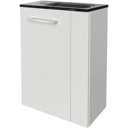 – Waschbeckenunterschrank mit 1 Tür links (inkl. Metallgriff) und 1 Einlegeboden
