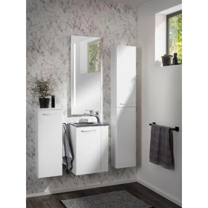 Immer mehr fungiert das Gästebad als Visitenkarte des persönlichen Einrichtungsstils. Der Fackelmann Waschbeckenunterschrank ist Teil der Small Bathroom Collection (SBC), mit der Fackelmann sein bewährtes Konzept für die Vielfalt und das elegante Ambiente im Gästebad neu überdacht und optimiert hat. Der hängend montierte Waschbeckenunterschrank begeistert mit zahlreichen ansprechenden Korpus- und Frontvarianten, die von Weiß über Anthrazit bis hin zu diversen Holzdekoren reichen. Die Tür links lässt sich mit einem edel anmutenden Metallgriff öffnen. Das Schrankinnere ist in neutralem Silbergrau gehalten. Alle notwendigen Badutensilien können auf einem Einlegeboden sicher und sauber verstaut verstaut werden.