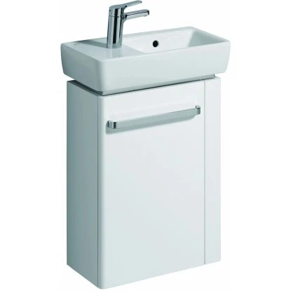 Der Geberit Waschbeckenunterschrank Renova Compact überzeugt mit praktischem Stauraum und edler Optik. Der Unterschrank besitzt eine Tür mit einem festen Einlegeboden, wodurch er eine große Auswahl an möglichen Stauraum bietet. All Ihre genutzten Badutensilien finden hier genügend Platz. Somit wirkt Ihr Badezimmer immer stilvoll und zugleich aufgeräumt.