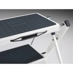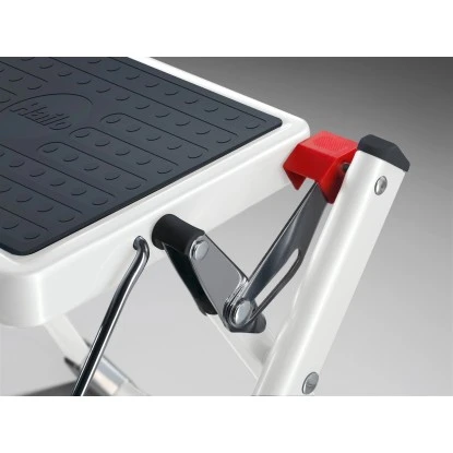 Der Hailo Klapptritt Mini in Weiß-Anthrazit ist klein und mobil für regelmäßige Tätigkeiten rund um Haus, Garten und Garage. Er ist zusammenklappbar und dank des geringen Gewichts können Sie diesen praktischen Helfer für Aufräumarbeiten im Keller, zum Wechseln der Birnen in der Garage oder zum Putzen der Fenster auf Ihrer Terrasse mitnehmen. Die 2 großen Stahlstufen mit rutschsicherer Matte und eine Klappsicherung mit Entriegelungstaste sorgen für einen festen Stand. Der Hailo Klapptritt Mini ist zusammengeklappt einfach zu verstauen.
