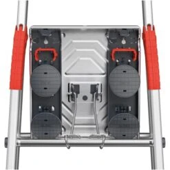 Das Hailo Wechselfuß-Set EasyClix Garden bietet für jeden Boden die passenden Leiterfüße. Die großen, tellerförmigen EasyClix Garden-Füße eignen sich optimal für weiche Untergründe draußen. Das Set wird im platzsparenden Magazin aufbewahrt.