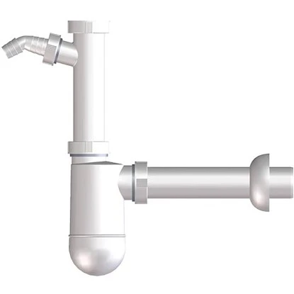 Der HL Waschtischsiphon DN 32 verfügt über ein höhenverstellbares Tauchrohr mit 5/4″-Anschlussgewinde, ein rückflussgesicherten Waschgeräteanschluss 3/4″ sowie einer Rosette.