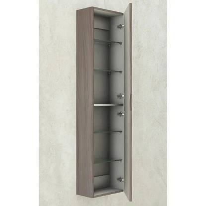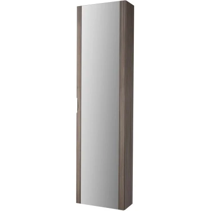 Der Hochschrank Rondi ist die perfekte Ergänzung zum Badmöbel-Set Rondi. Er besteht hauptsächlich aus PVC-foliiertem MDF-Holz, welches mittels deutscher Technologie verarbeitet wurde und somit einem sehr hohen Qualitätsstandard entspricht. Der Hochschrank ist neben zeitlosem Weiß sowohl in warmen, hölzernen Farben wie Lärche und Esche Weiß als auch in modernen Farben wie Schwarz Hochglanz und Dunkelgrau mit Struktur erhältlich. Der geräumige Hochschrank ist mit einem Spiegeltür mit integriertem Soft-Close-System ausgestattet. Die Tür ist mit Griffmulden versehen, der Hochschrank ist drehbar und kann sowohl rechts als auch Links montiert werden.