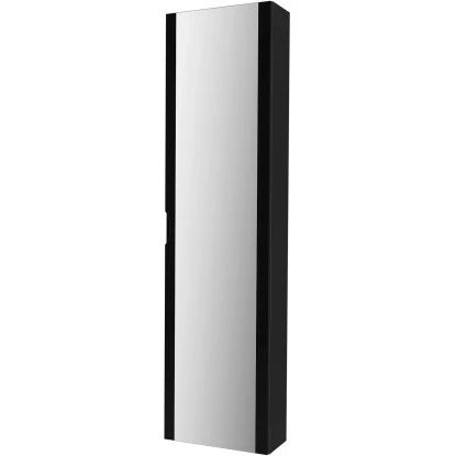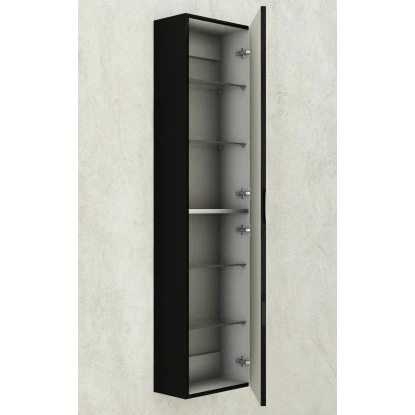 Der Hochschrank Rondi ist die perfekte Ergänzung zum Badmöbel-Set Rondi. Er besteht hauptsächlich aus PVC-foliiertem MDF-Holz, welches mittels deutscher Technologie verarbeitet wurde und somit einem sehr hohen Qualitätsstandard entspricht. Der Hochschrank ist neben zeitlosem Weiß sowohl in warmen, hölzernen Farben wie Lärche und Esche Weiß als auch in modernen Farben wie Schwarz Hochglanz und Dunkelgrau mit Struktur erhältlich. Der geräumige Hochschrank ist mit einem Spiegeltür mit integriertem Soft-Close-System ausgestattet. Die Tür ist mit Griffmulden versehen, der Hochschrank ist drehbar und kann sowohl rechts als auch Links montiert werden