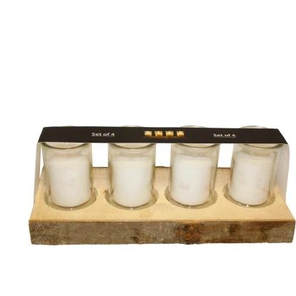 Holz-Tablett Mit 4 Kerzen Im Glas Ca. 29 Cm X 12 CmWeiß