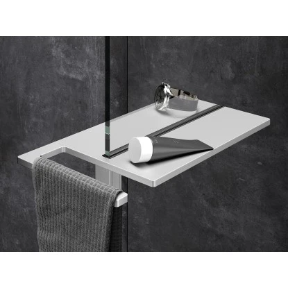 Die Hüppe Duschablage Select+ mit Handtuchhalter ist der perfekte Ordnungshelfer in der Dusche.