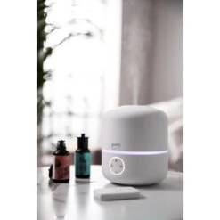Der Ipuro Air Sonic Elektrischer Diffuser Good Mood White schafft ein Dufterlebnis der besonderen Art. Der elektrische Aroma-Diffuser versprüht durch seine innovative Ultraschalltechnologie einen sanften, kühlen Aromanebel aus Wasser im ganzen Raum und sorgt dadurch nicht nur für einen wohligen Duft, sondern verbessert gleichzeitig das Raumklima durch die luftbefeuchtende Wirkung. Dazu wird das Gerät mit 250 ml Wasser befüllt und ein paar Tropfen eines Ipuro Air Sonic Duftöls nach Wahl hinzugegeben. Der sanfte Aromanebel verteilt sich gleichmäßig auch in größeren Räumen bis 30 Quadratmeter durch wahlweise Intervall- oder Dauerbetrieb, der direkt am Gerät oder über die im Lieferumfang enthaltene Fernbedienung gesteuert werden kann. Das integrierte Stimmungslicht, das ebenfalls über die Fernbedienung regulierbar ist, kann in der Farbwelt individuell angepasst werden, sodass sich der elegante Diffuser optimal in jede Wohnungseinrichtung einfügt.