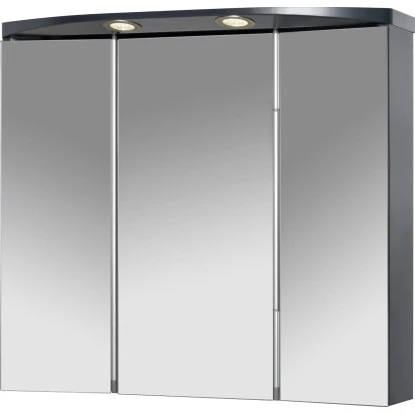 Der Badezimmerschrank verfügt über drei Spiegeltüren aus hochwertigem Kristallglas. Durch das angewinkelte Design entsteht ein 3D-Spiegeleffekt. Dank der zwei LED-Spots, die im Lieferumfang enthalten sind, werden die Spiegel jederzeit perfekt ausgeleuchtet. Zudem ist die Beleuchtung energiesparend. Der Jokey Spiegelschrank besitzt außerdem eine Schalter-Steckdosen-Kombination. Die innenliegenden Glaseinlegeböden können Sie nach Ihren Wünschen anbringen. So sind Ihre Badezimmerutensilien gut und ordentlich verstaut.
