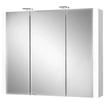 Der Badezimmerschrank verfügt über drei Spiegeltüren aus hochwertigem Kristallglas. Dank der zwei LED-Strahler, die im Lieferumfang enthalten sind, werden die Spiegel jederzeit perfekt ausgeleuchtet. Außerdem verfügt der Spiegelschrank über zwei zusätzliche LED-Lightstrips an den Türaußenkanten. Mit den vier Lichtquellen wird Ihr Badezimmer perfekt ausgeleuchtet. Zudem ist die Beleuchtung energiesparend. Der Jokey Spiegelschrank besitzt außerdem eine Schalter-Steckdosen-Kombination. Die innenliegenden Glaseinlegeböden können Sie nach Ihren Wünschen anbringen. So sind Ihre Badezimmerutensilien gut und ordentlich verstaut.