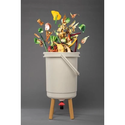 Die entstehende, biologische Flüssigkeit (Komposttee) dient im Verhältnis 1 zu 30 mit Wasser verdünnt als Bio-Pflanzendünger oder ist als Abflussreiniger verwendbar.