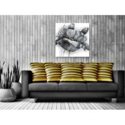 Die Leinwand misst eine Höhe von 80 cm, eine Breite von 80 cm und eine Tiefe von 3,8 cm. Das Bild wird sicher verpackt und holzgerahmt geliefert.